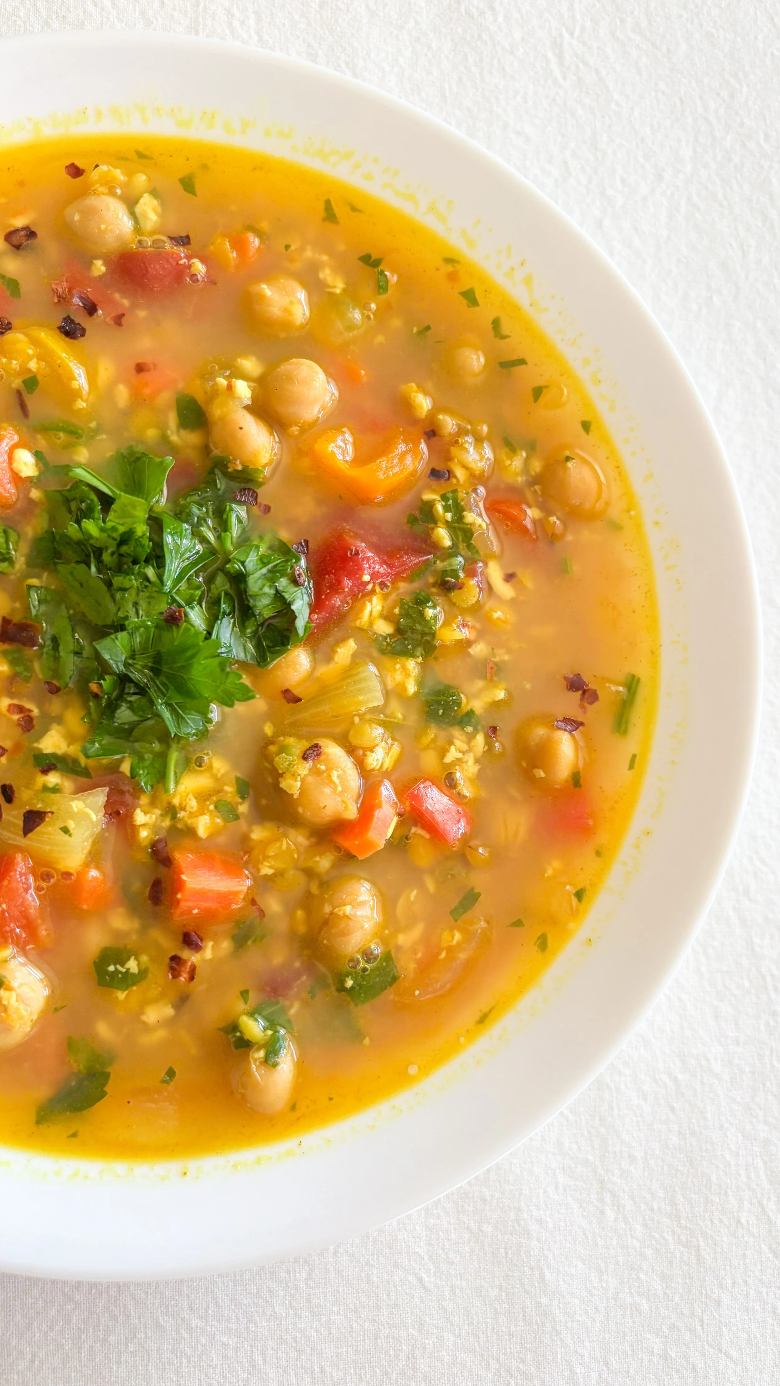 Să mănânci sănătos nu trebuie să fie complicat sau plictisitor. Această Harira vegană dovedește că o simplă supă poate fi reconfortantă, vindecătoare și profund nutritivă. Este genul de masă care îți susține energia și hormonii fără să te simți încărcată.