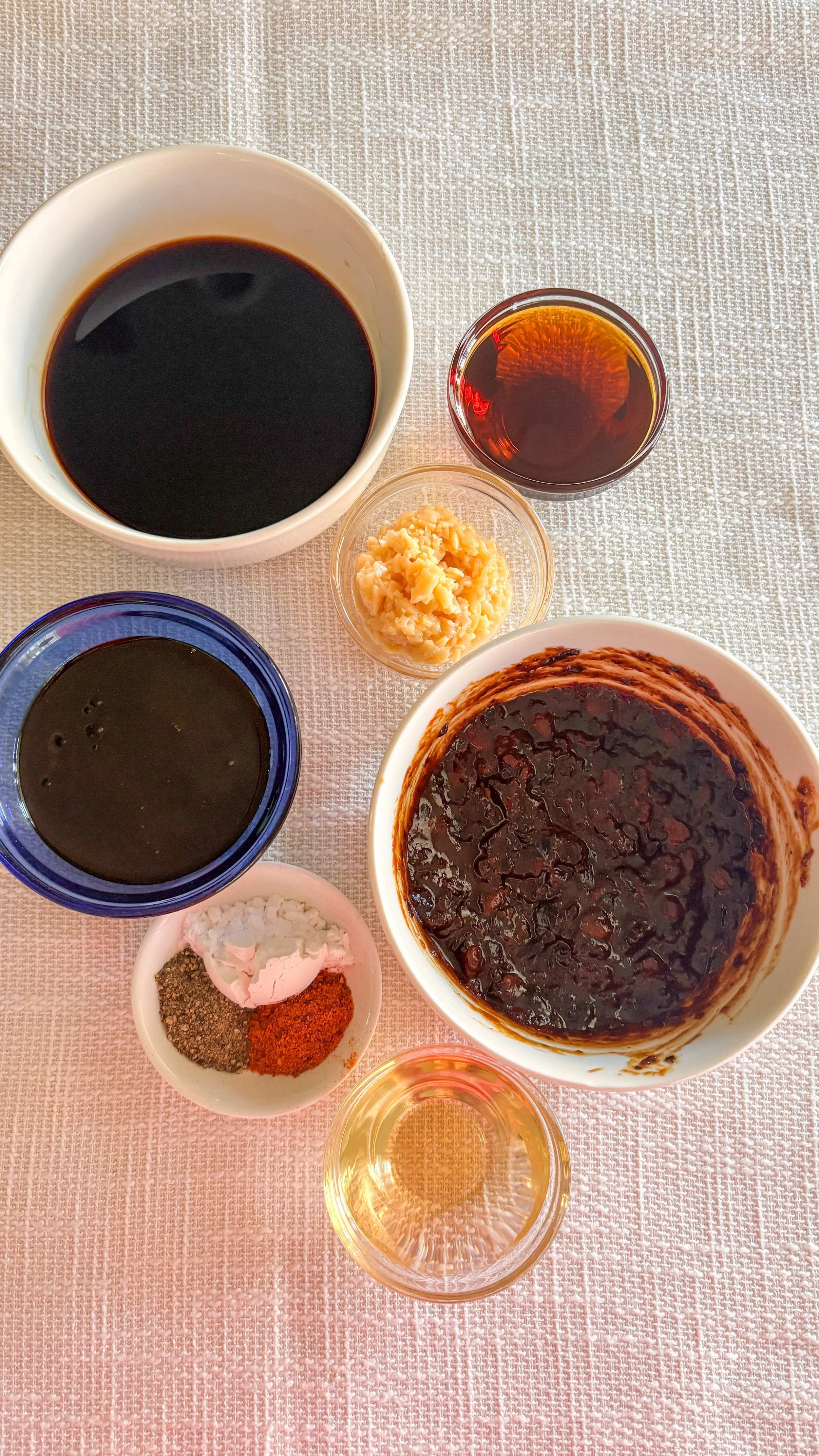 In a small saucepan over medium-high heat, whisk together the soy sauce, date syrup, sesame oil, rice vinegar, fermented bean paste (or peanut butter), garlic paste, chili powder, and black pepper.
