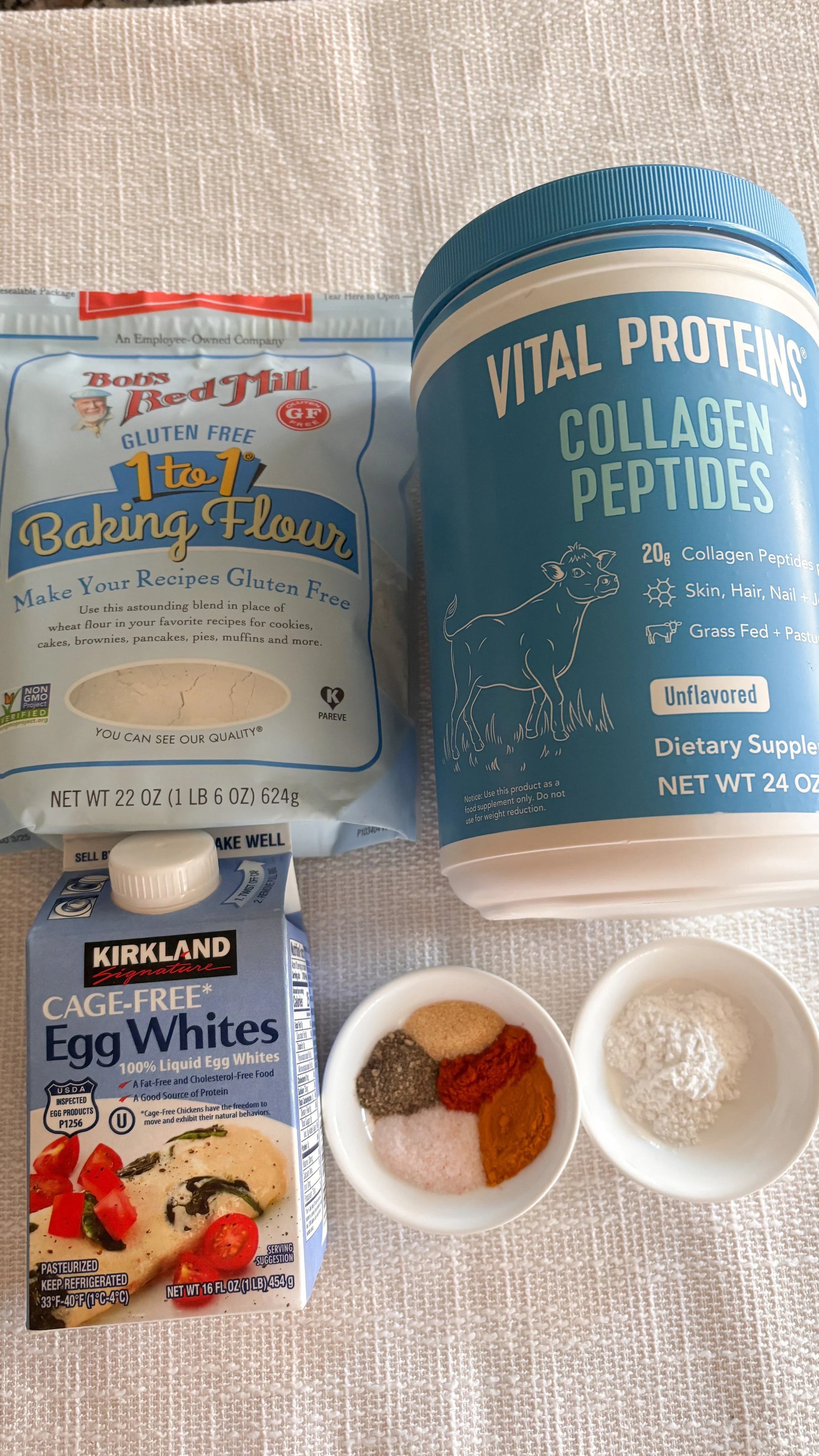 At the core of the recipe are egg whites and collagen—two incredibly efficient protein sources. Egg whites bring structure and volume, while collagen adds an extra protein boost without affecting texture too much. The addition of a small amount of gluten-free flour helps bind everything into a flexible, wrap-like consistency, so you’re not stuck with something that feels like a dry pancake or omelet.